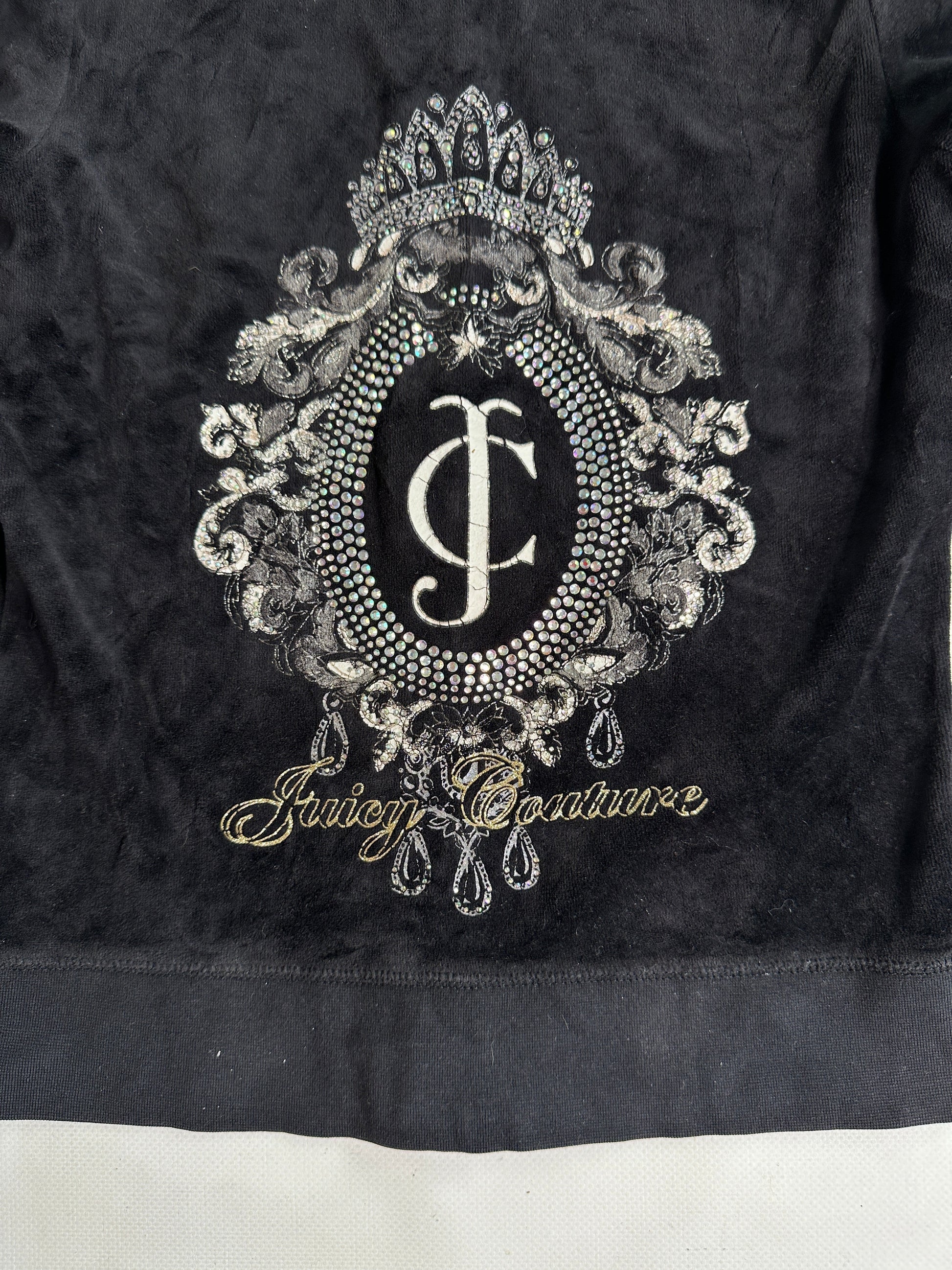 STUNNING Archive Juicy Couture track set with velour zip up jacket and low rise pants! THE vintage Y2K icon ;) Rhinestones graphic details and J golden zipper!