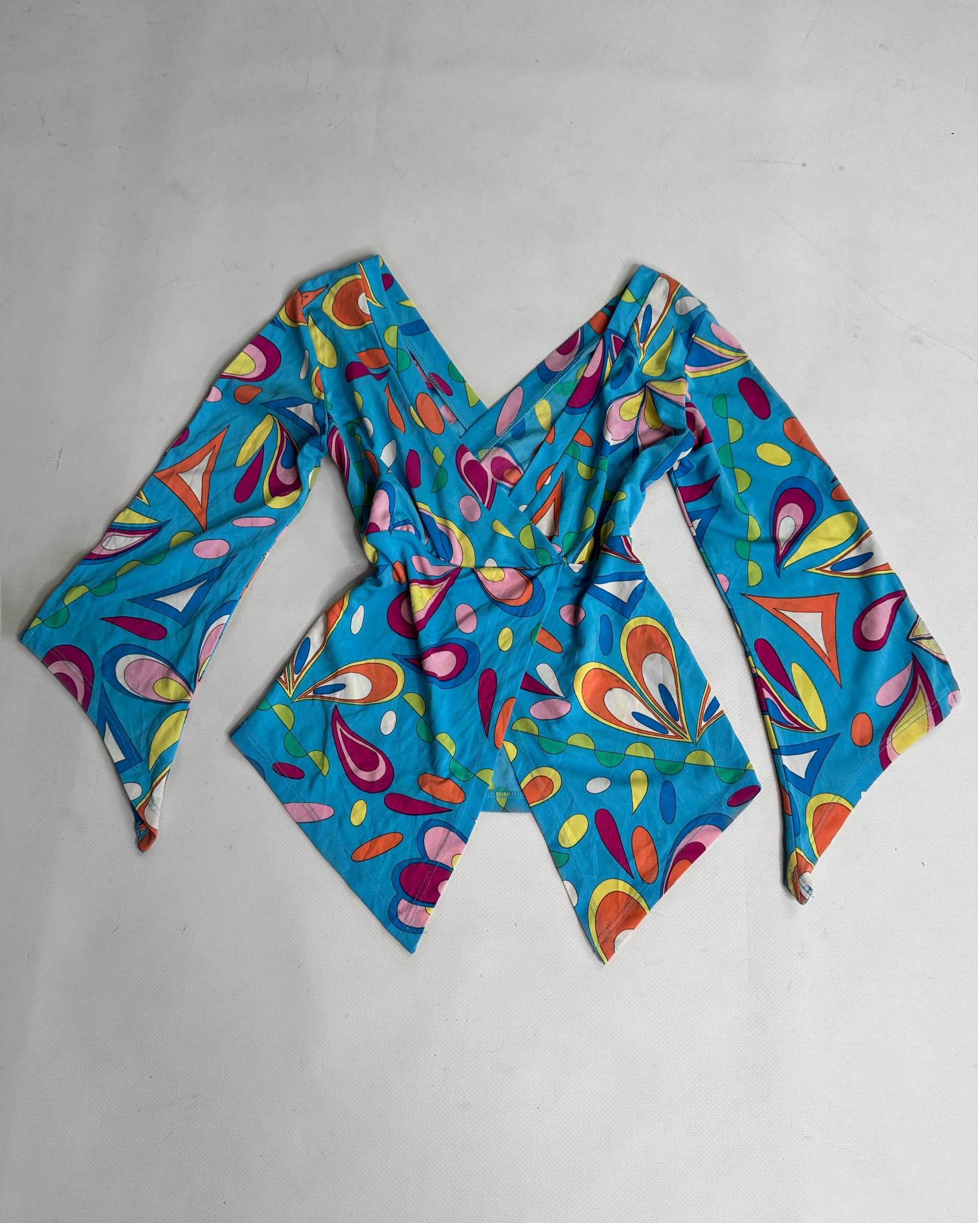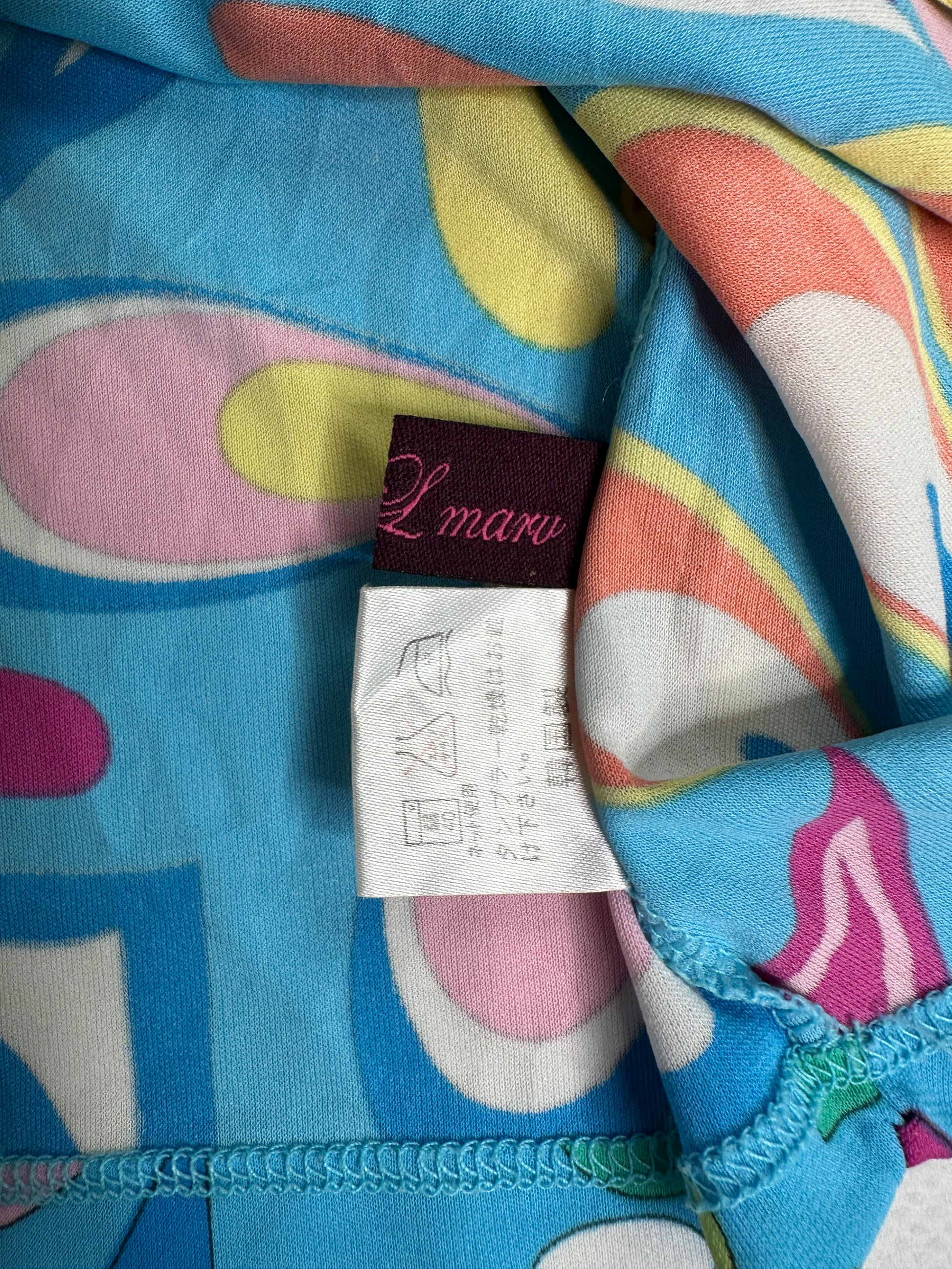 2000s vintage Y2K camisole blue graphic print and asymmetric cut